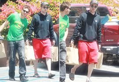 Robert Pattinson, foi fotografado na terça-feira (9) fazendo compras com um amigo, o cantor Sam Bradley. O ator saiu cheio de sacolas de uma loja em Los Angeles, nos Estados Unidos, com um look casual: chinelo, bermudão e um agasalho. Mesmo assim ele continua lindo como sempre não é pessoal?